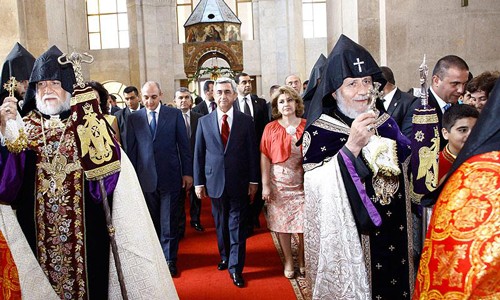 The priests are arrayed in ambiguous babylonian regalia, having their serpent-staffs at hand, and the president Sargsyan was illegally deposed from his presidency in 2018, for which western democracies used NGOs ,